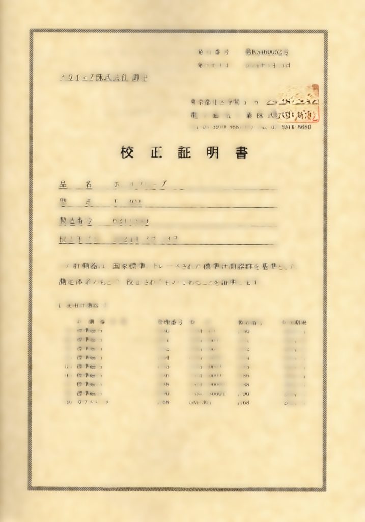 校正証明書